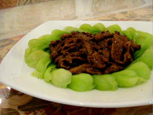 牛肉(适量) / 小油菜(适量) / 葱、蒜(适量)