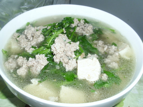 西洋菜肉末冻豆腐汤美味诠释: