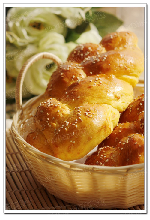 印象中我除了在高中的时候剪过一次短发,其它时间都是长发飘飘的。小时候妈妈喜欢把我的头发编成辫子,辫子跟马尾相比,优点主要体现在便于梳理,而在夏天,辫子会比马尾更加凉爽。 家里有一根胡萝卜在冰箱里躺了好久了,于是决定做一款以胡萝卜为原料的面包,做了比较常见的辫子造型,用的是﹎煩的方子,可惜偶的辫子老是编不好,有点小郁闷,是因为从来没有自己编过吗? 请忽略辫子的形状,只看颜色吧,加了胡萝卜所呈现的天然色彩,看着是不是也很漂亮呢!