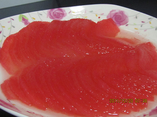4、这就是红酒黄梨了,很好看吧!还很好吃呢,红酒的醇香,黄梨的清香,非常非常的棒!