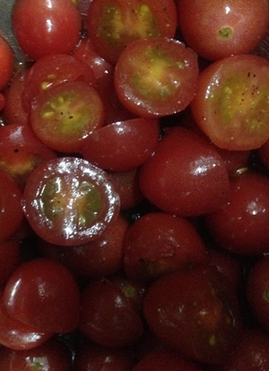 2、切成两半,然后加入胡椒和盐调味,如果条件允许,可以加入红酒醋或者沙拉dressing。