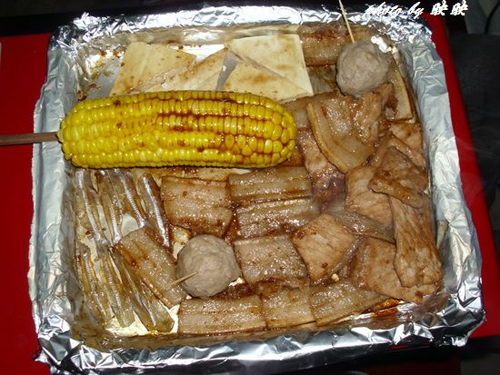 及以下步骤:等到有滋滋声,猪肉变白,翻面再烤。 挪一挪猪肉,加入玉米、牛肉丸、豆腐和鱼干。 再加入茼蒿。烤熟就可以开始吃啦,真香!要自备米饭哦! 豆腐切成三角形。 煮熟的玉米一根,牛肉丸2颗,鱼干少许。 茼蒿洗净。 烤箱顶置烤盘铺一张锡纸,调上火250度,往烤盘上排好猪肉片,等待烤制。 等到有滋滋声,猪肉变白,翻面再烤。 挪一挪猪肉,加入玉米、牛肉丸、豆腐和鱼干。 再加入茼蒿。烤熟就可以开始吃啦,真香!要自备米饭哦!
