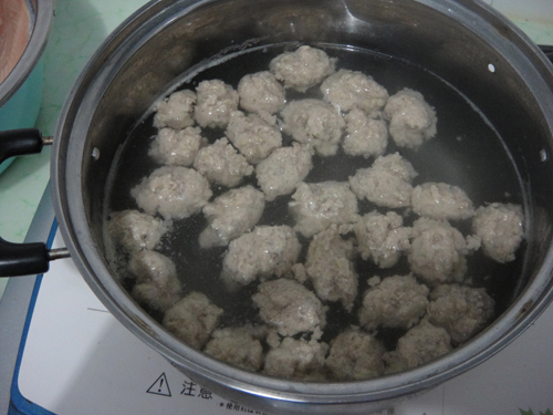 及以下步骤:所有的都放在一起了。 用力向一个方向搅动,最后这样。 水大约50度左右,开始有大一点的泡泡出现的时候就可以下鱼丸了,在下的过程中,不要让水开,保持这个温度。 全部完成后,让水开煮大约两分钟,就可以了,不要煮大久。样子不是太好,因为用勺子做的形状。 当然也可以用油炸,这个是我今天炸的,用手挤的,这个样子好一点。呵呵 所有的都放在一起了。 用力向一个方向搅动,最后这样。 水大约50度左右,开始有大一点的泡泡出现的时候就可以下鱼丸了,在下的过程中,不要让水开,保持这个温度。 全部完成后,让水开煮大约两分钟,就可以了,不要煮大久。样子不是太好,因为用勺子做的形状。 当然也可以用油炸,这个是我今天炸的,用手挤的,这个样子好一点。呵呵