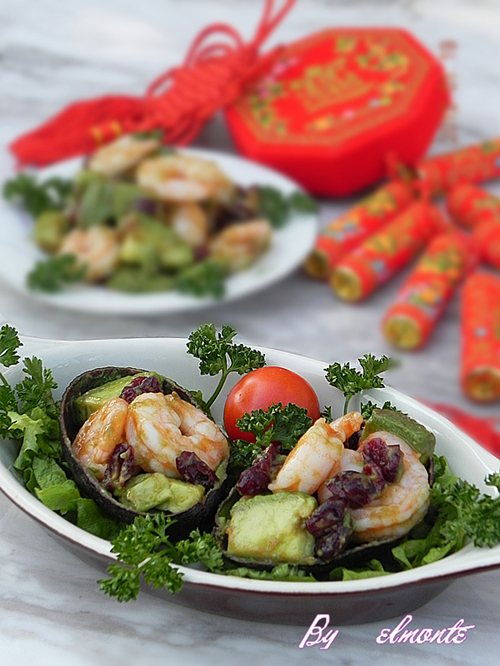 虾仁(10来个) / 蔓越莓干(2大匙) / 牛油果(1个)