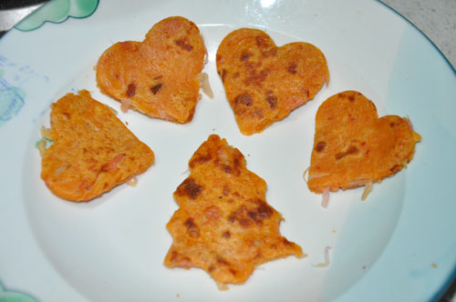 及以下步骤:电饼铛淋上几滴油,倒入一些面糊,用铲摊平,盖上盖加热一分钟,打开如图就可以翻个面。 来个完美翻身。 出锅做造型,饼干模派上用场了,对于不爱吃饭的宝宝,我觉得可以用这招,小孩应该会喜欢。 完工,明天带公司跟同事分享,不过肯定没有刚出炉好吃。 下次应该再多放点泡菜。 电饼铛淋上几滴油,倒入一些面糊,用铲摊平,盖上盖加热一分钟,打开如图就可以翻个面。 来个完美翻身。 出锅做造型,饼干模派上用场了,对于不爱吃饭的宝宝,我觉得可以用这招,小孩应该会喜欢。 完工,明天带公司跟同事分享,不过肯定没有刚出炉好吃。 下次应该再多放点泡菜。