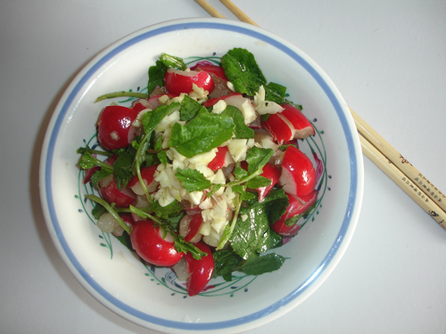 樱桃萝卜比起其他我们熟知的萝卜更像是一种水果,爽脆可口,水分大,没有辛辣味道,维生素c含量是番茄的3—4倍呢。食用萝卜有通气宽胸、健胃消食、止咳化痰、除燥生津、解毒散瘀、止泻、利尿等功效。 还有萝卜缨也是好东东呢,吃萝卜的同时,可千万别随手扔掉萝卜缨,它的营养价值在很多方面高于根,维生素c含量比根高近两倍,矿物质元素中的钙、镁、铁、锌等含量高出根3—10倍。 今天菜市场的樱桃萝卜很是新鲜呢,买一把尝尝鲜吧。我就用樱桃萝卜和樱桃萝卜的缨子做个爽口的小凉菜吧!