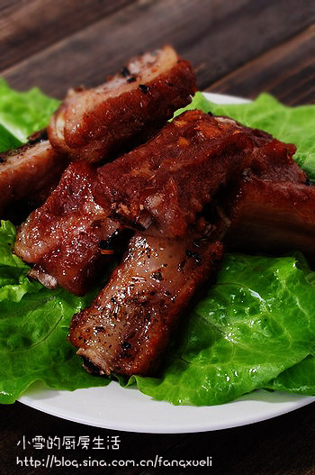 最近天天在弄一些花花菜菜,菜发芽了可是花却不发芽,这点让我很是郁闷,这次用来垫排骨的生菜是我自己由一颗小小的种子种出来的,所以生吃也非常的放心,不需要担心农药过多不能生吃等问题,吃起来甜甜的青菜味。 其实比起平时烤甜点之类的,我更喜欢烤肉,完全的肉食动物者,烤鸡翅,烤肉串,烤茄子等等很多的烤箱肉,都是我非常喜欢的,而且比起做甜点做烘焙更少了很多的准备工作,只需要把材料准备好腌制一定的时间就可以烤了,很容易更合适新手烘焙者。