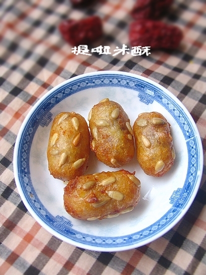 及以下步骤:挤入适量枣泥。 包制,收口。 搓成长约5厘米、直径约3厘米的圆柱形,然后外层沾上葵花籽仁。 如此做好所有的金枣胚。 锅里放油,油热至4、5成时放入葵花金枣炸熟。 升高油温,炸至表面金黄捞出沥油,趁热食用最佳。 搓成长约5厘米、直径约3厘米的圆柱形,然后外层沾上葵花籽仁。 如此做好所有的金枣胚。 锅里放油,油热至4、5成时放入葵花金枣炸熟。 升高油温,炸至表面金黄捞出沥油,趁热食用最佳。