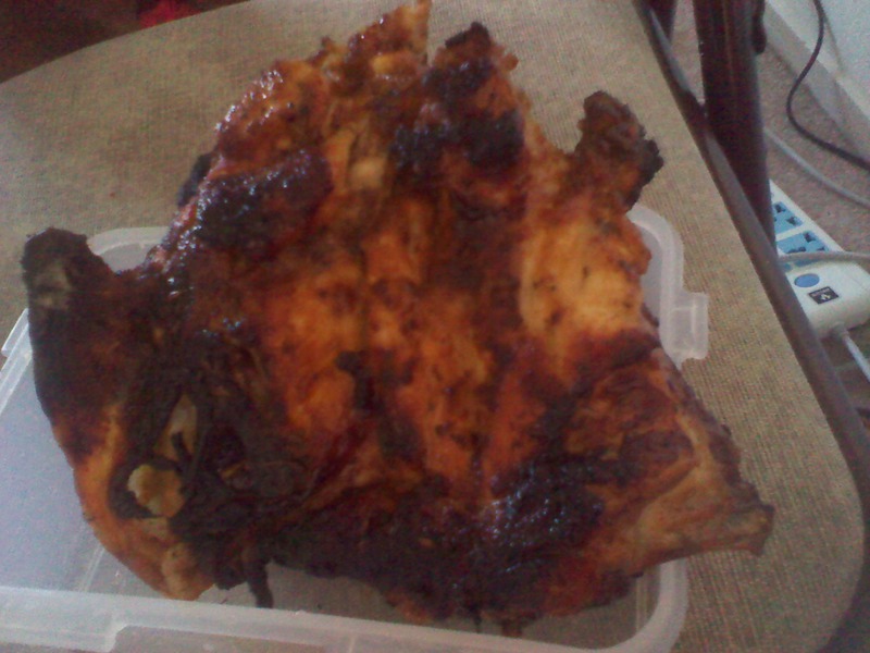 4、期间忍不住去翻看几次,味道不错,揪了一块尝了尝,淡了点,可能太心急了,大家可以腌制一会再烤,进进味。算是大功告成,骨头的地方焦焦脆脆的,好香啊要是调料更多一点就更完美了,哎,没办法了。 美美的吃着鸡架,喝点啤酒,看电影,打着饱嗝,幸福的耶~~