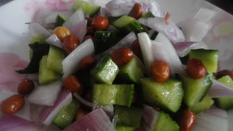 花生米(适量) / 黄瓜(一根) / 圆葱(半颗)
