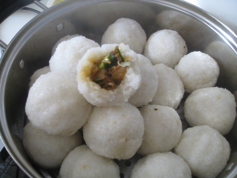 这是家乡的米团子,可以按自己口味包进喜欢的材料,可热可冷,可当小吃也可以当主食,越吃越有嚼头。