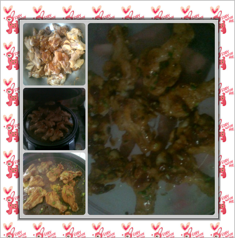 及以下步骤:电饼铛同上电源,直接放肉肉进去摆好,盖好盖子,5分钟后打开盖子(注:不用放油的) 鸡翅跟洗干净,用牙签在肉肉上戳几下(好入味),放料酒,姜片 盐 腌制半小时(时间腌制的越长越好) 电饼铛同上电源,直接放肉肉进去摆好,盖好盖子,5分钟后打开盖子(注:不用放油的) 鸡翅跟洗干净,用牙签在肉肉上戳几下(好入味),放料酒,姜片 盐 腌制半小时(时间腌制的越长越好) 电饼铛同上电源,直接放肉肉进去摆好,盖好盖子,5分钟后打开盖子(注:不用放油的) 鸡翅跟洗干净,用牙签在肉肉上戳几下(好入味),放料酒,姜片 盐 腌制半小时(时间腌制的越长越好) 电饼铛同上电源,直接放肉肉进去摆好,盖好盖子,5分钟后打开盖子(注:不用放油的) 开盖后,用筷子试一下,可以戳烂肉肉,就可以撒孜然粉,撒葱花了! 装盘!美味的烤翅根出炉了! 想吃吗?