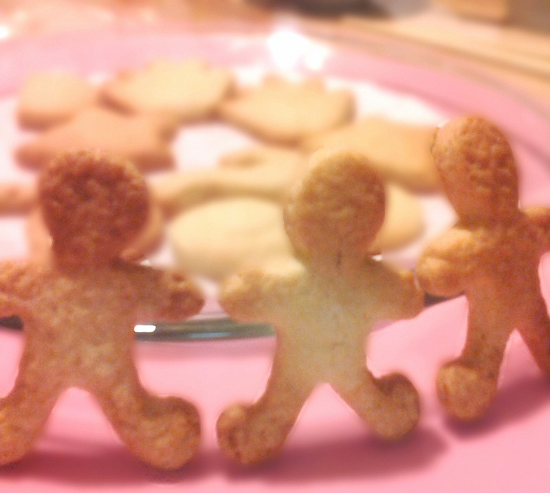 及以下步骤:吼吼,看看我的造型玩具吧,上回在“target”买的,超级便宜,才10美金吧,有101个!这回还是头一次用,吼吼。 20分钟后,面皮取出,掀开一面保鲜膜,用喜欢的造型玩具按出造型出来。 烤盘铺锡纸,造型饼干入烤箱,上下火,华氏350度,15分钟就好。吼吼,这是第一盘出炉了,十分钟内就被老公干掉了! 第二盘出炉了。 呵呵,第三盘进炉了,好可爱吧,我把他们做成了“旺仔小馒头”。 小馒头的近照。 成品照。 人民大团结,哈哈。 成品照。 人民大团结,哈哈。
