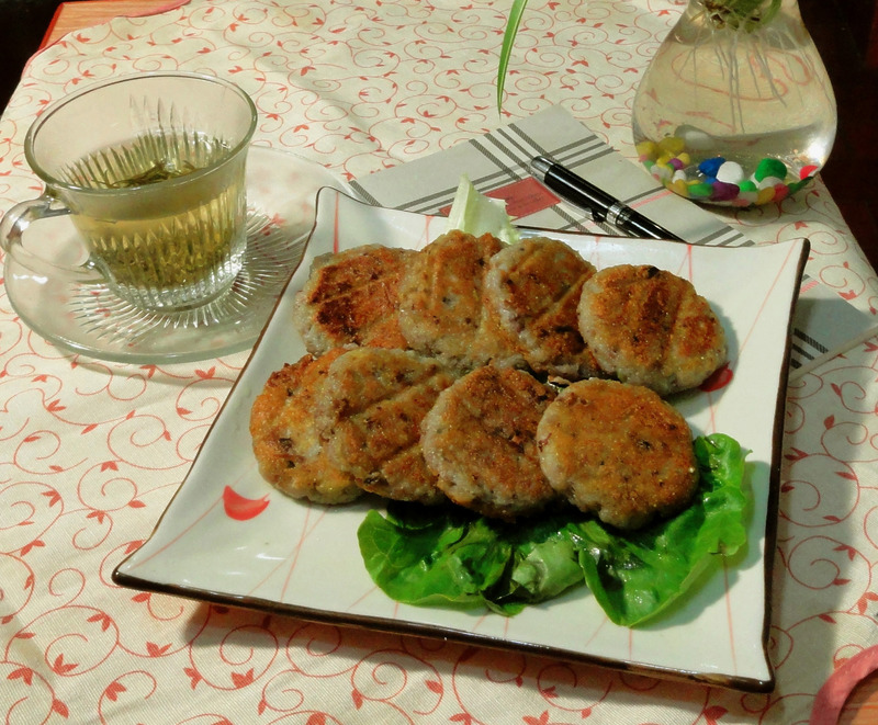 及以下步骤:葱切成葱花 将藕茸加入面粉和玉米粉搅拌,因为擦藕茸时,会有藕汁渗入,加入面粉和玉米粉是为了收住藕汁。拌匀之后再加入核桃碎和葱花。核桃碎后加的原因,是要保持核桃的脆感。 在电饼铛里加一汤匙橄榄油,将搅拌好的藕茸搓圆,轻轻放入。然后,在每个藕圆上再刷一层橄榄油,盖上电饼铛。约一分钟后,打开翻一下,再盖上。两面煎成金黄色即可。 装盘。 将炒熟的核桃碾碎 碾碎的核桃 葱切成葱花 将藕茸加入面粉和玉米粉搅拌,因为擦藕茸时,会有藕汁渗入,加入面粉和玉米粉是为了收住藕汁。拌匀之后再加入核桃碎和葱花。核桃碎后加的原因,是要保持核桃的脆感。 在电饼铛里加一汤匙橄榄油,将搅拌好的藕茸搓圆,轻轻放入。然后,在每个藕圆上再刷一层橄榄油,盖上电饼铛。约一分钟后,打开翻一下,再盖上。两面煎成金黄色即可。 装盘。