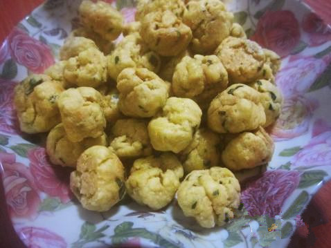及以下步骤:揉成一个面团 盖上湿布 饧10分钟 饧好后,去一半面团,搓成长条 揪成一个一个的小剂子 再用手搓圆 摆入微波炉适用的盘中 要间隔开 放入微波炉高火2分钟 取出翻面 在叮1分 ok啦,葱香小小酥做好了