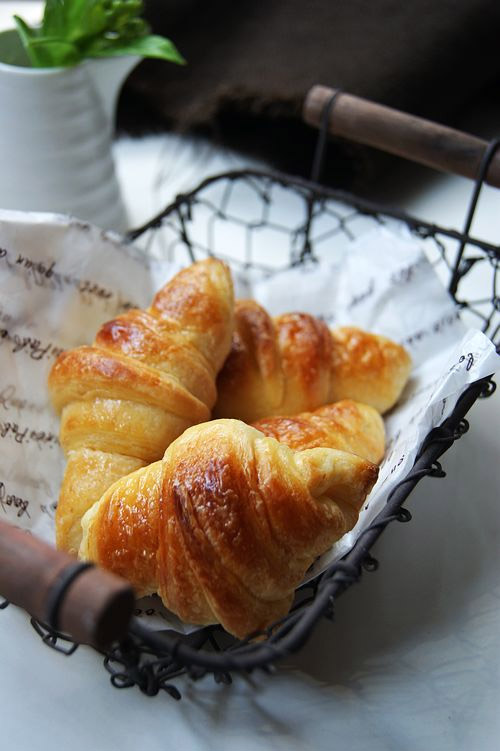自制牛角包不是难事,只要严格遵照食谱的分量和步骤认真去做,在家也能烤上新鲜美味的牛角包,而且成本比买便宜多了,只要几块钱就可以做出一大盘来。有兴趣的tx不妨来试试,做成功很有成就感的! 丹麦牛角面包属于起酥面包的一类。掌握它的做法以后,就可以轻而易举的做出任何起酥类面包。不管是丹麦土司,还是形状各异的起酥面包,它们的制作流程基本一致,只是最后的整形不同。