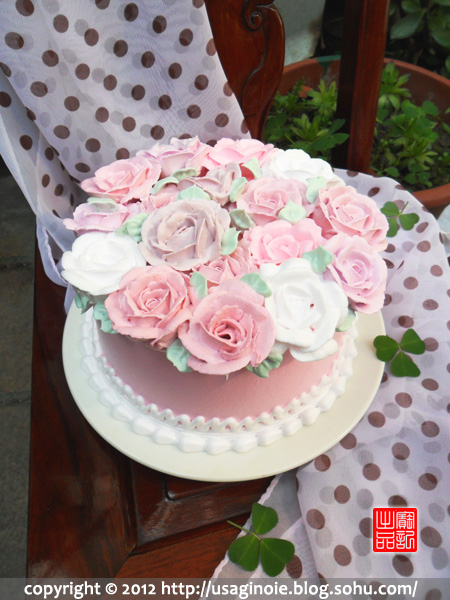 一款练习玫瑰花裱花的蛋糕^_^ 当然很漂亮很有春天的感觉,所以取名春田花花~ 小俗即是大雅 希望这款美美的蛋糕给大家带来好心情