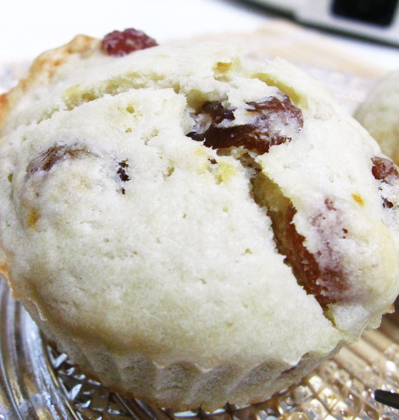 盐(1.25g) / 植物油(30g) / 白糖(30g) / 鸡蛋(20g) / 水(80g) / 葡萄干(40g) / 低粉(100g) / 泡打芬(6g)