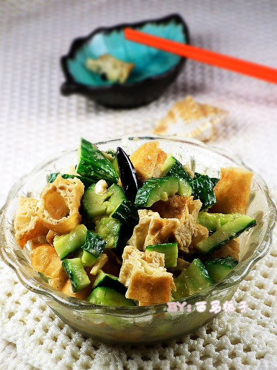 夏季天气炎热,人们很容易上火。可以多吃一些黄瓜。黄瓜养颜又健康。可清热利水,解毒消肿,生津止渴,是夏季餐桌上常见的健康食品。 这道简易美味的夏季小菜,香脆可口,清热爽口。即可是菜又可代饭,即可省去厨房的烟熏火燎,又是一道美味健康的佳肴。还给吃剩下的油条找到好的去处。。。。