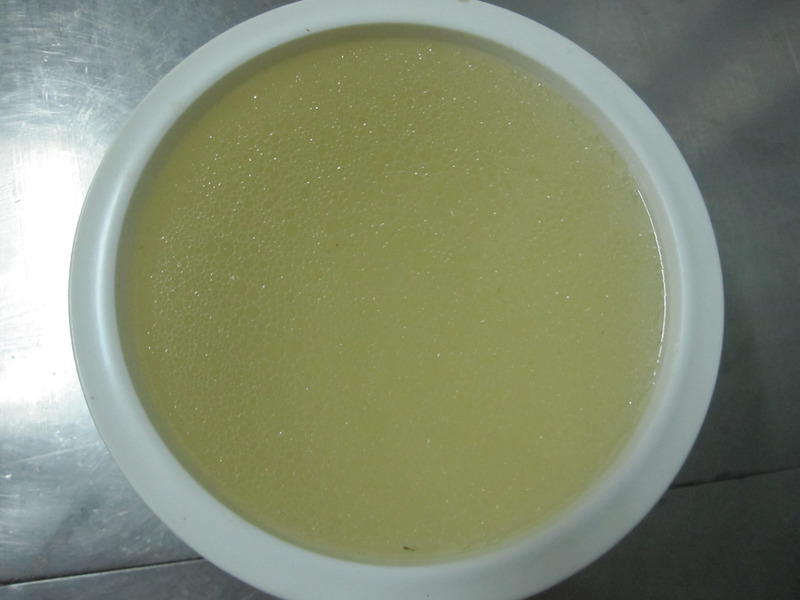 6、好了,你是不是觉的像是鸡汤呢?是因为生姜片的作用哦,汤才会发黄。