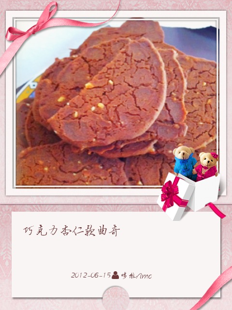 为了保证资料实用性巧克力杏仁软曲奇制作分享是网友推荐编辑整理了28911条信息中抽取12条信息整理而来,已有604人次查阅。(中华厨具网 小编感谢大家查阅)