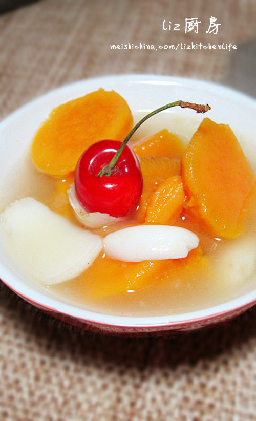 经常煲汤的人,肯定会问番薯甜汤明明适合冬季喝,你怎么在夏季煲来喝了? 相同的事物,只要稍作改变,结果也会不同 即便是炎热的夏季,太过贪凉也会患上感冒,有别于热感冒;因为熬夜,吃夜宵,导致脾胃疲劳,便秘;因为温度高,导致食欲不振…… 诸多在夏季会遇到的难题,这款甜汤还是很适合的。正如我前面所说,稍作改变,我将传统方法中的姜量减少,新添加进了百合、甘草、樱桃,使其热性降低,口味也更甘甜。这款汤还哼适合在电脑前久坐的公司一族哦! 有关百合、甘草的益处,在前面一款甜汤已经做过说明了,详情请戳这里:{雪耳甘草甜汤} http://home.meishichina.com/recipe-71833.html 来说说另外两位主角: 番薯:有名红薯,有较强的降低血中胆固醇、维持血液酸碱平衡、延缓衰老及防癌、抗癌作用。含有丰富的膳食纤维和胶质类等排便物质,可谓肠道清道夫 樱桃:美容佳品,能缓解电脑工作者的不适症状。抗贫血,促进血液生成,祛风胜湿,收涩止痛 不过番薯糖分淀粉含量较高,一次不可多食,以免不消化;而樱桃在这款甜汤中只是辅料,含铁量高且性温,一次也不宜多食,所以只用临出锅放入几颗即可。 另,有朋友问为什么自己做出的番薯甜汤汤色浑浊,甚至发绿,连番薯也会变色? 我也会来分享一个小窍门,保准做出来的甜汤色泽莹润,番薯红心软糯~ (食物不会说谎,味觉不会背叛)