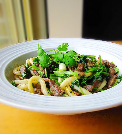 牛肉香菜炒乌冬美味诠释: