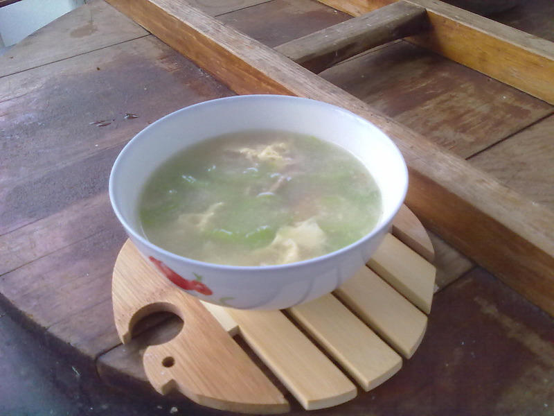 及以下步骤:大火烧开,鸡蛋先在碗里打匀,浇在烧开的汤里。加少许盐调味即成 一碗清暑好汤就成了。 给大家看一下我家的大锅,锅盖很壮观吧,现在少见了,房主给我们留下的。 瘦肉切片,就剩这一点肉了,不是纯瘦的,将就用吧,葱切碎 丝瓜去皮切片 我还加了一点海米 起油锅,加少许油,放葱花,肉片翻炒一下,炒至肉变色 加入丝瓜片,翻炒一分钟后加入猪骨头汤,或清水 大火烧开,鸡蛋先在碗里打匀,浇在烧开的汤里。加少许盐调味即成 一碗清暑好汤就成了。
