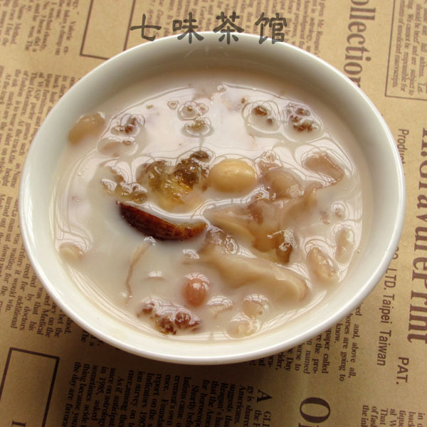 银耳(适量) / 花生(适量) / 葡萄干(适量) / 莲子(适量) / 蜜枣(适量) / 桃胶(适量)