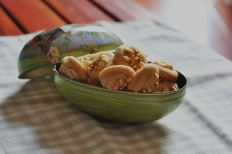最近宠物零食做多了嘛。。人吃的反而越做越少,看着冰箱里那些材料,那叫一个纠结。都不知该如何搭配。做蛋糕?鸡蛋太少了。做饼干?黄油不够用了。做布丁?一个不太新鲜的鸡蛋+半盒牛奶。也没淡奶油。感觉口感也不会好到哪去。。╮(╯▽╰)╭ 上周做了一瓶花生酱。。柜子里还有半包榛果碎,感觉自制花生酱不能太久吧?还有那半包榛果碎。。似乎也快到期了。算了。组合一下。。。就随手搭了这款饼饼。简单的四部,制作过程并不难,但是成品超乎我预期的口感。。也太酥了吧?!出炉后用手都拿太不起来。。稍微用力。。面目全非- - 入口即化,粉酥粉酥的口感,不用牙齿咬,入口后轻轻一抿,饼干就化了的~再加上榛果那特有的香味。也太好吃了吧?!不过,想想也简单的。如此重油的饼饼,能不酥也难 花生控怎能错过这款美味?!