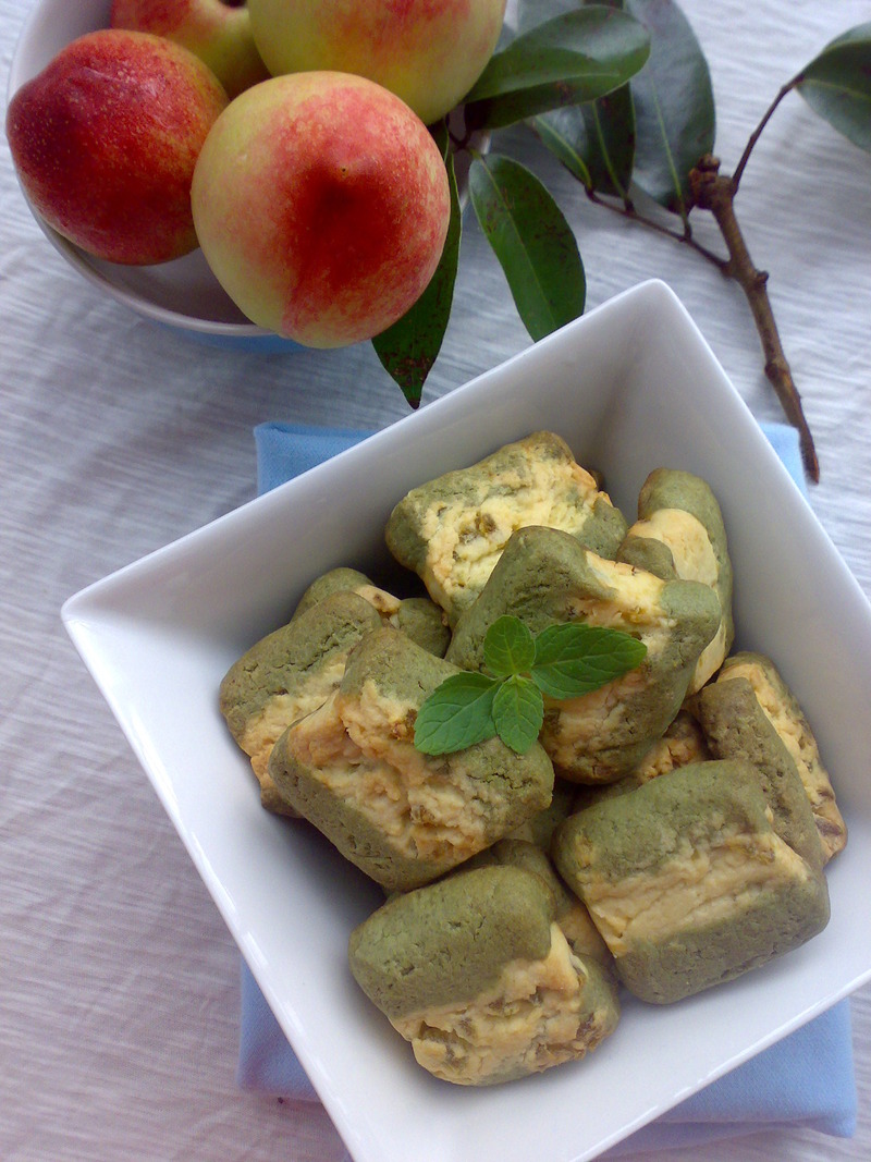 及以下步骤:糖油混合物加入b粉,摊薄片,中间切开,翻拌成团入冰箱,冷藏20分钟 20分钟后取出面片,涂上蛋清,如图中摆放在一起,再入冰箱冷藏30分钟,切厚片,放入烤盘 烤箱180度,烤25分钟。咱因临时有事,最后的一部的冷藏30分钟没做,结果成品颜色分界不明显,不过还是一样的好吃 加入糖盐蛋液拌至松发 b中的绿茶粉加入低粉过筛待用 c中的低粉过筛待用 糖油混合物分成两等份,加入c粉中,再加入切碎的奇异果脯,翻拌成团,摊厚片,入冰箱冷藏20分钟 糖油混合物加入b粉,摊薄片,中间切开,翻拌成团入冰箱,冷藏20分钟 20分钟后取出面片,涂上蛋清,如图中摆放在一起,再入冰箱冷藏30分钟,切厚片,放入烤盘 烤箱180度,烤25分钟。咱因临时有事,最后的一部的冷藏30分钟没做,结果成品颜色分界不明显,不过还是一样的好吃