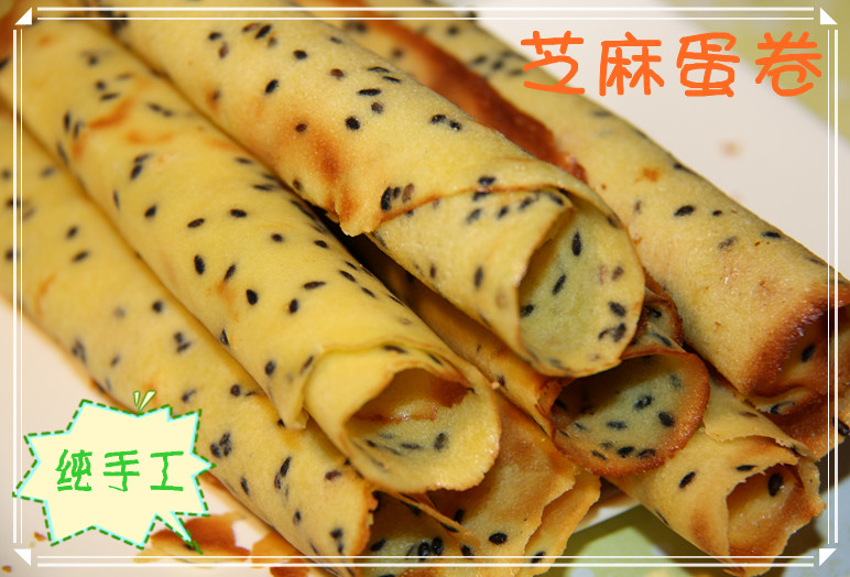 及以下步骤:取出蛋捲皮放在一塊平板上,迅速用筷子將其捲起,讓蛋捲定型後即成。 香酥蛋卷 雞蛋和白糖打散混合均勻。 加芝麻和融化的黃油攪勻。 邊攪拌邊慢慢篩入麵粉製成蛋麵糊。 舀一大勺蛋麵糊在平底鍋上(不要開火)。 搖動平底鍋將麵糊攤成薄片。 開小火把麵糊煎至金黃色,翻一面再煎至金黃色。 取出蛋捲皮放在一塊平板上,迅速用筷子將其捲起,讓蛋捲定型後即成。 香酥蛋卷