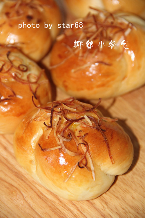 翻过来的那个是椰丝小餐包,照的不是太清楚,凑合着看吧!