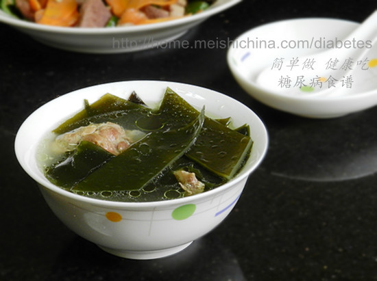 夏日炎炎,出汗量明显增加,食欲减退,大鱼大肉令人退却,清淡开胃的小菜往往大受欢迎。一碗脊骨海带汤,营养丰富、滋味鲜美、脂肪含量不高,配合两碟清淡开胃的小菜,均衡营养的同时,令人精力充沛。 猪脊骨含有丰富的神经节苷脂,促进神经细胞核酸及蛋白质合成,促进轴索再生和骨体形成,对于预防和辅助治疗糖尿病病足有一定疗效。也适合所有人群食用,可以滋阴补肾、填补精髓,用于营养不良、肾虚耳鸣、腰膝酸软、阳痿、遗精、烦热、贫血等。 海带富含褐藻多糖(可溶性膳食纤维),有降糖和润肠的作用。富含碘,常吃对脱发和甲状腺肿大有一定疗效;富含钙、铁、胡萝卜素、纤维素、褐藻多糖等,常吃可降低胆固醇,对血管硬化、高血压、冠心病有一定预防和辅助疗效;含甘露醇,对治疗急性肾衰、脑水肿、急性青光眼有效。