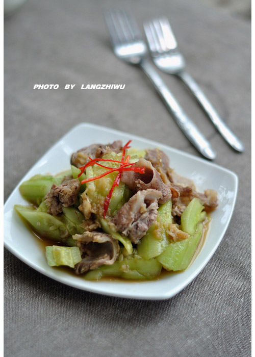 用剔骨肉来做菜,这又是一个农家的吃法,也是久违的一个味道了。今天就用剔骨肉来调个凉菜吃,用以怀念那些记忆里的鲜美滋味。 以前家里隔段时间就会买点猪大骨,买来后用点佐料添上一锅水炖了吃肉喝汤。说是吃肉,其实就是骨头上的那零星的筋肉,不过那些靠近骨头肉却是那么的鲜美。有时候就心思为什么都爱啃排骨了,是靠近骨头的肉的味道是最鲜美的。 剔骨肉家里会用来炖菜或调些凉菜吃,剔过肉的骨头又被扔到锅里继续熬汤。一锅熬好的骨头汤用处是很大的:炖菜、浇面条,或者在碗里撒上点葱花、香菜末把滚热的骨头汤浇在碗里,热热的喝来,那也是很鲜美的。