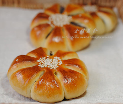 红豆花形面包美味诠释: