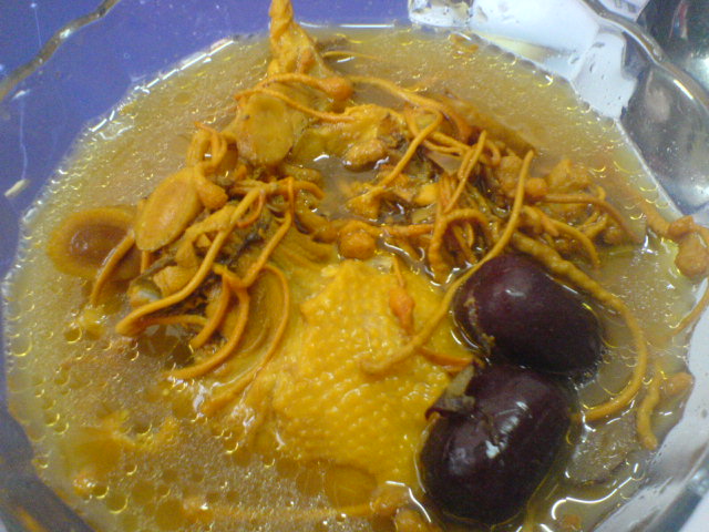 及以下步骤:虫草花 黄芪 虫草花 黄芪 虫草花 黄芪 虫草花 其它材料我就不拍了^_^,做法:先把鸡骨架洗干净,加入黄芪,加适量的水(我的材料是一个人的量,所以,哥哥姐妹们,自己掌握一下吧,呵呵呵……)煮开以后煲半小时,再加入虫草花、红枣(去核)再煲40分钟左右,上锅前放姜,,再加上盐就ok,由于没有拍图,所以就跳过.到成品啦,只要一个半小时 再来一张 开动罗^-^超级懒人汤,味道很好的^_^