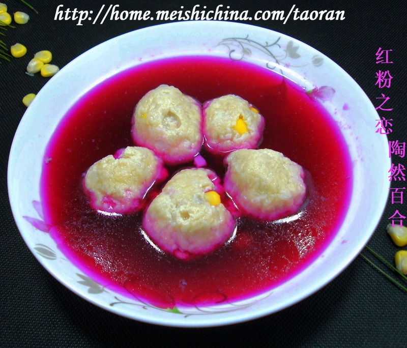素食越来越流行,素食的健康理念也越来越被人们所接受,素食也是低碳环保的一种行为。咱位普通大众不能做到完全素食,不过可以多素少荤搭配。 对佛门来说,食素既是放生,能够积功德,由于您来吃素,使不少动物得以解脱被残杀的恐惧和痛苦,减少了环境和资源的压力。食肉勇敢而悍,食谷智慧而巧,其实食素即能满足人体对各类营养的需要,让你今天体力更好、智慧更高、身体感觉清爽。 七夕那天做玫瑰花馒头剩下还有红苋菜汁,于时自创了这道红粉之恋,其实就是以豆腐为主的菜,白色的豆腐丸子因有了粉红的苋菜汁做陪衬,仿佛一朵白色的花儿绽放于红叶中,无意中便制造了一种浪漫的气氛,感觉,很美。