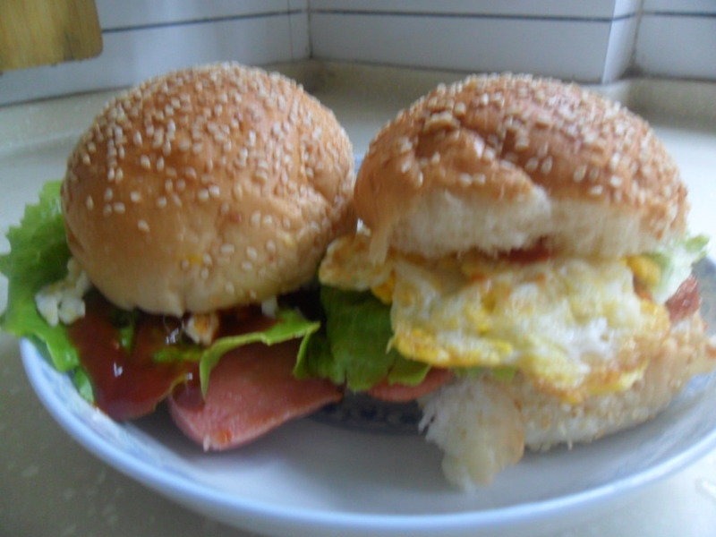 懒人做hamburger必看! 暑假又到了,炎炎夏日,好无聊。因为实在不知道干什么,于是就走进厨房,看看有啥好玩的。这不,就突然想起了kfc的汉堡,因为食材不够,就简单做了一下,还有副汉堡的模样。这样做hamburger,不用烤箱,不要在去超市买培根芝士这类的东西,只要有5样东西,就能做! 呵呵,还蛮好吃,如果你是个勤快人,那在加点东西也无妨! 终于不用再去kfc了,想吃自己做,呵呵。虽然我本来一年就只去5次