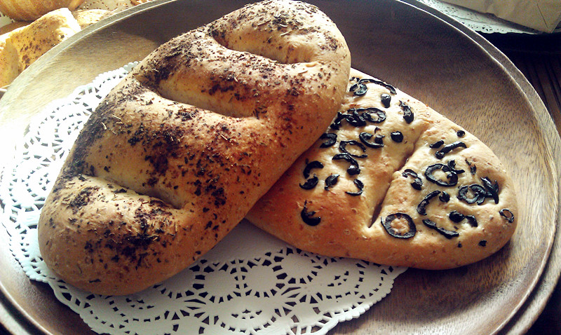 及以下步骤:将主要材料放入面包机进行二次15分钟和面 进行分团揉圆,我按100g做成8只面包 将主要材料放入面包机进行二次15分钟和面 进行分团揉圆,我按100g做成8只面包 将主要材料放入面包机进行二次15分钟和面 进行分团揉圆,我按100g做成8只面包 将擀面杖擀成长方形加盖布地行第一次20分钟放松发醇 中间用擀面刀切型,表面涂橄榄油 将百里香、肉桂、罗勒等一些干燥的香料混合,其中二只面包我用了橄榄切条放面表面,进行第二次发醇1小时20分钟 烤箱预热10分钟,最底层放碗水,烤制时间为25分钟左右