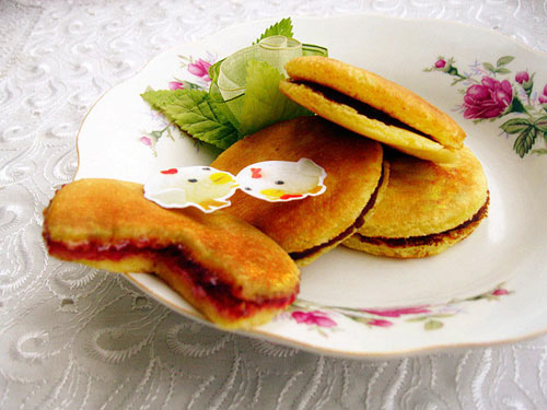 从一直以来很喜欢铜锣烧,用料和制作都相对简单,味道确实很好的。小的时候看到电视里哆啦a梦吃这个,好羡摹啊!那时候还以为这种美味只存在于电视的动画片里。后来慢慢才知道,现实中也确实存在呢。而且和想象中一样好吃呢,呵呵。