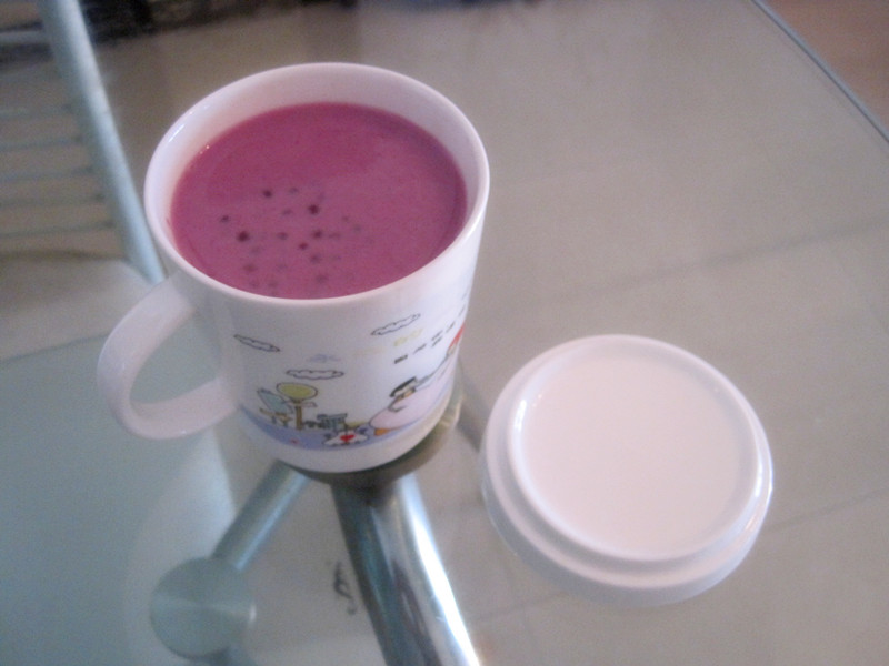本想做紫薯块西米露的,结果用带蒸格的高压锅蒸过紫薯后,盘子里很多水,索性就把紫薯压成糊糊。。。