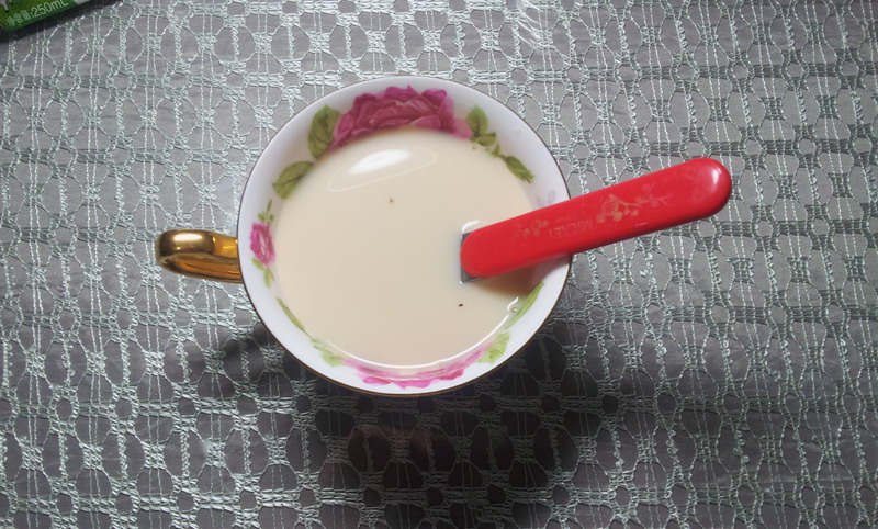 3、为了确定最后口味适合自己,在最后加奶的时候可以加一部分,尝一下。