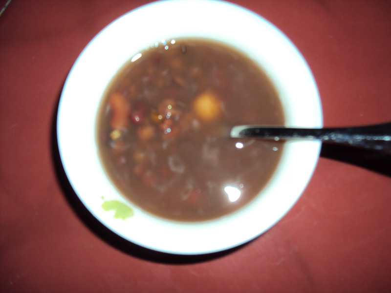 5、各种杂粮,能买到的,多种类。我用了黄豆、绿豆、红豆、白芸豆、黑豆、小米、碎玉米、意米、莲子、燕麦各5克,红枣三颗,煮出来能有俩小碗。