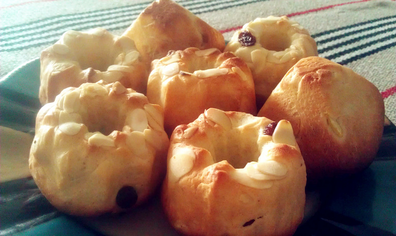 这款面包源于奥地利,但却是法国阿尔萨斯的特产,面团做法与牛奶小餐包相同,将牛奶及水一起加入. 库克洛夫源于德语,意思就是将面包做成球状,我没有现成球状的模,就蛋糕模替代专业上这款库克洛夫模,有点象戚风蛋糕模差不多.口感上黄油加量,葡萄干及柠檬皮加入,面包中带有蛋糕的感觉.据资料说这款面包深受法国国王路易十六的皇后最喜爱的一款面包.