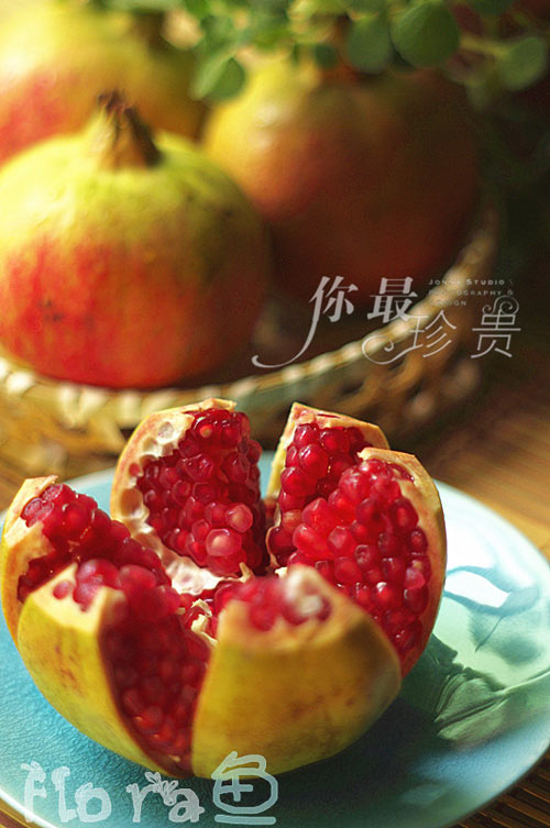石榴的功效与作用有很多,其营养特别丰富,含有多种人体所需的营养成分,果实中含有维生素c及b族维生素,有机酸、糖类、蛋白质、脂肪,以及钙、磷、钾等矿物质。据分析,石榴果实中含碳水化合物17%,水份79%,糖13~17%,其中维生素c的含量比苹果高1~2倍,而脂肪、蛋白质的含量较少,果实以鲜吃为主。