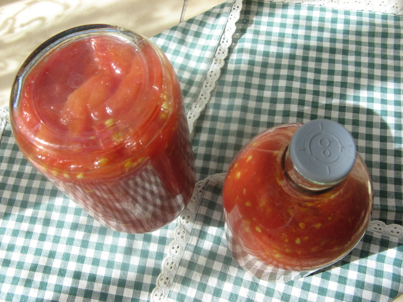 及以下步骤:上锅煮15分钟 开盖将瓶口用酒精擦干净,立即盖盖,然后关火。 从锅中取出放凉。 这可不是耍杂技,倒着放是为了密封,正着放的那瓶是我趁盖盖前倒入了油,用油盖住酱也是为了阻隔空气而保质啊。 凉后收到避阴的地方,可以放几个月,西红柿下市后就可以启封做菜打汤了。一但开启要尽快吃完。 上锅煮15分钟 开盖将瓶口用酒精擦干净,立即盖盖,然后关火。 从锅中取出放凉。 这可不是耍杂技,倒着放是为了密封,正着放的那瓶是我趁盖盖前倒入了油,用油盖住酱也是为了阻隔空气而保质啊。 凉后收到避阴的地方,可以放几个月,西红柿下市后就可以启封做菜打汤了。一但开启要尽快吃完。