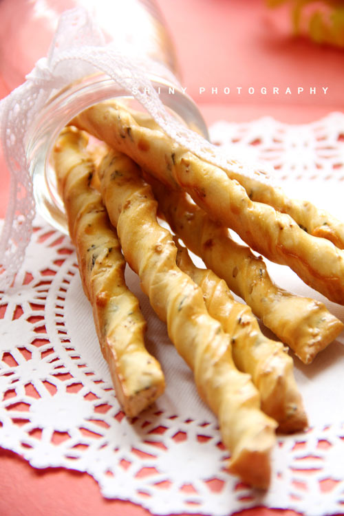 及以下步骤:将保鲜膜剪开,取出面皮,如果不平可以再擀几下。切成1cm左右的面条 拧成螺旋状,放入铺有不粘布的烤盘中 表面刷蛋液。烤箱预热,170度烤20分钟左右即可 加入芝麻和剪碎的海苔 揉成一个光滑的面团 放在保鲜膜中静置30分钟 静置好以后,将面团隔着保鲜袋压扁略擀平,然后继续把面皮擀至0.2cm厚,基本充满整个保鲜袋后,平置15分钟 将保鲜膜剪开,取出面皮,如果不平可以再擀几下。切成1cm左右的面条 拧成螺旋状,放入铺有不粘布的烤盘中 表面刷蛋液。烤箱预热,170度烤20分钟左右即可