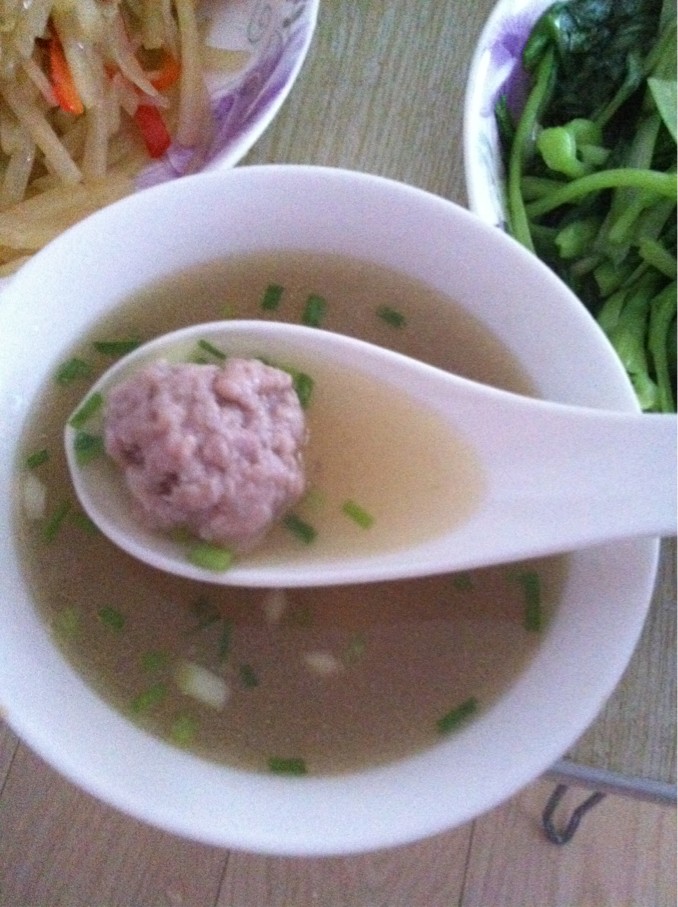 7、待肉丸子煮熟后撒上葱花,出锅