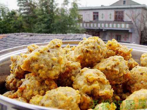 6、挤成丸子入油锅炸至金黄即可。